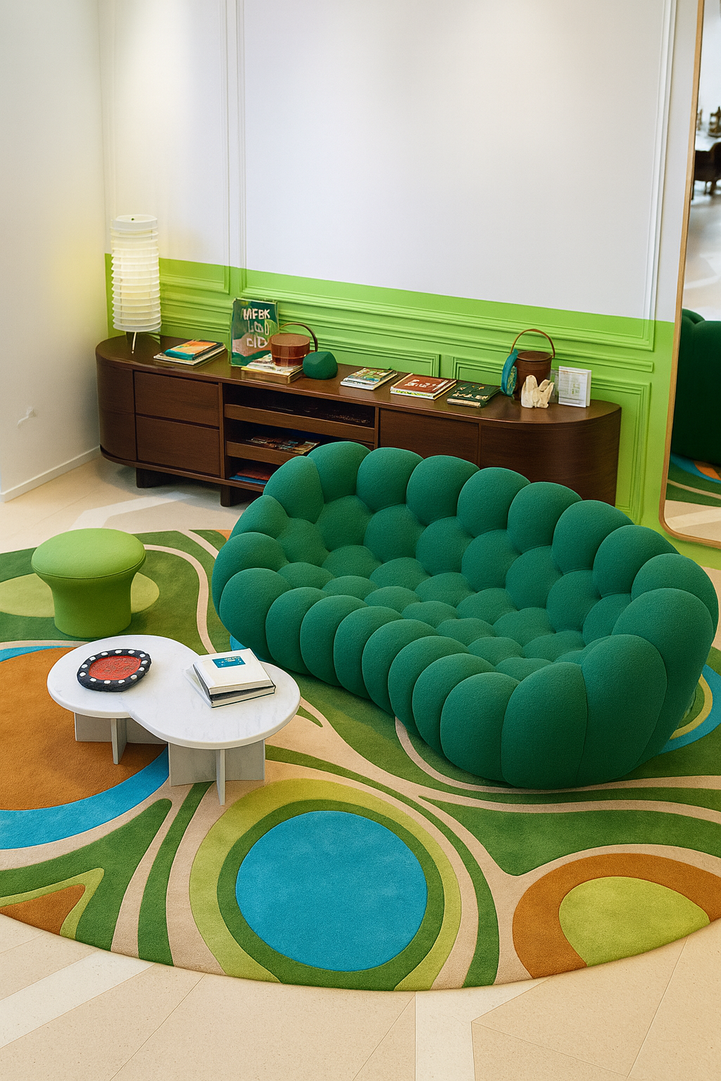 Absolutely love how this space turned out. The green bubble couch has become everyone’s favourite spot.